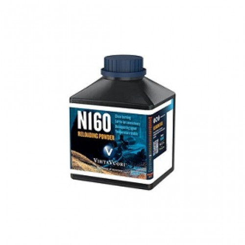 N160 is a tubular powder type with grain dimensions of 1,3 mm length and 1,1 mm diameter. The burn rate this powder is medium to slow on the scale of Vihtavuori rifle powders. The N160 is commonly used for big game hunting ammunition especially with heavier bullets.