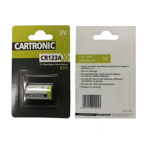 Cartronic's CR-123A cell provides high current discharge performance, with high reliability and safety. It offers the convenience of being user-replaceable.
