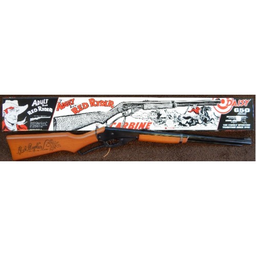 The Daisy Red ryder repeater Carbine Model 1938 is a classic BB gun featuring pink wood on the stock and forearm. Producing 350 feet per second velocity with standard .177 caliber BBs, the Model 1938 is a wonderful training tool for introducing youth to shooting